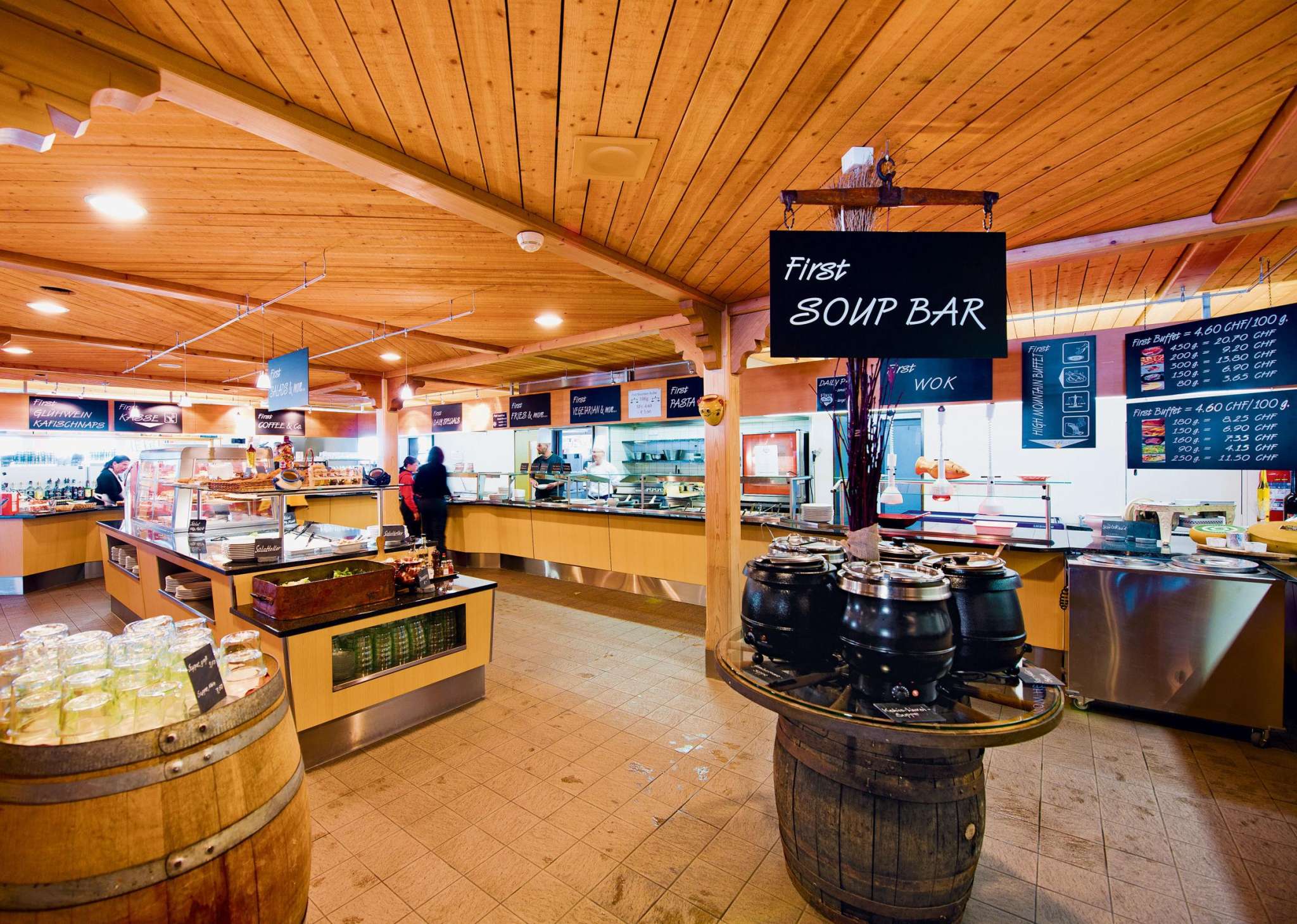 Direkt neben der Gondelstation First, auf 2200 m ü. M., befindet sich das Berggasthaus First mit seinem atemberaubenden Ausblick auf die umliegende Bergwelt. Auf der Sonnenterrasse und im Restaurant geniesst du den ganzen Tag köstliche Gerichte.