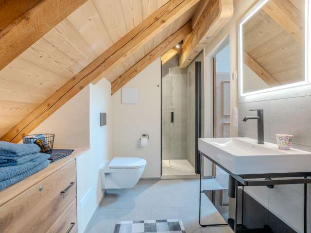 Von der schmucken Terrasse und vom Garten bietet sich ein schöner Blick auf die markanten Engelhörner.