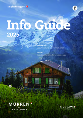Unser Guide versorgt dich auf 80 Seiten mit Informationen und Insidertipps zu den schönsten Ausflugszielen und Aktivitäten in der Jungfrau Region. Aber auch kulinarische Empfehlungen und historische Facts kommen in dem kostenlosen Guide nicht zu kurz. Er ist in Deutsch, Englisch und Französisch erhältlich. Auf dieser Seite kannst du jeweils die aktuelle Version herunterladen. Ebenso die Broschüren der Resorts.