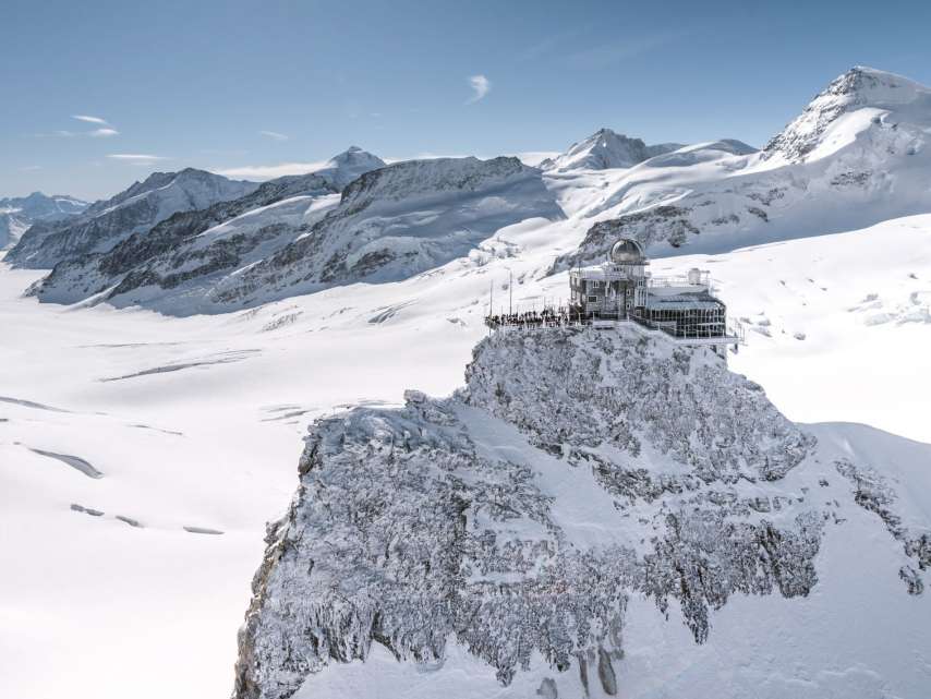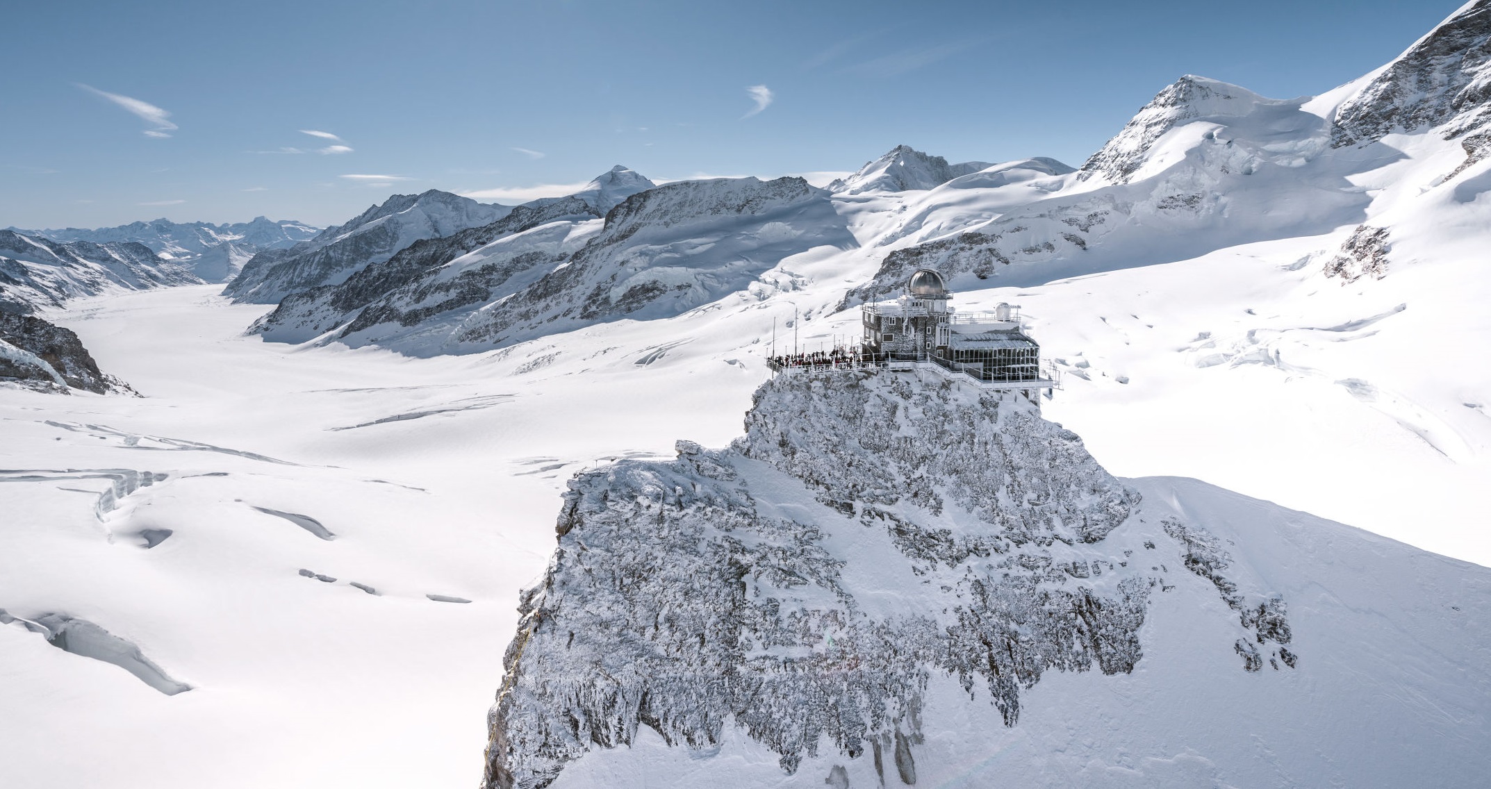 Hier kannst du den Eispalast besuchen, einen wunderbaren Ausblick auf den Aletschgletscher geniessen oder den Snow Fun Park entdecken. Bevor du das Jungfraujoch hinter dir lässt, wartet noch eine Verpflegung in einem der Restaurants auf dich.
