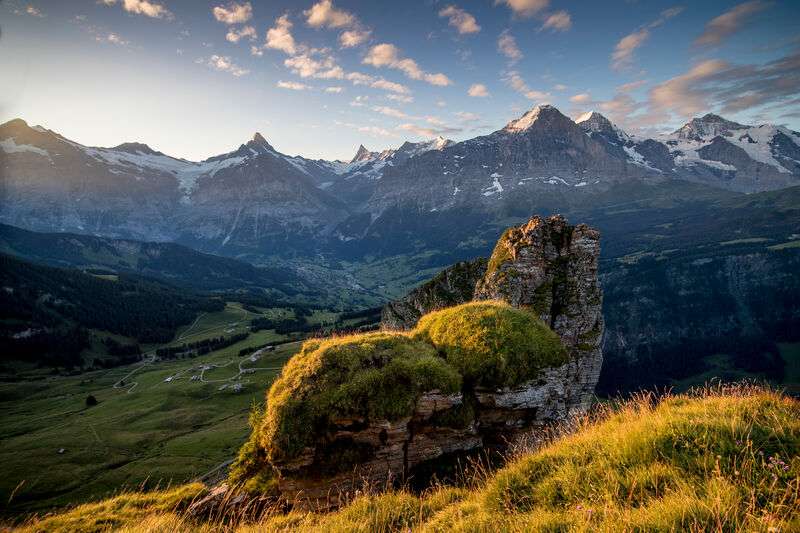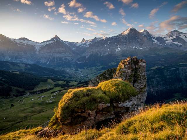 The Bussalp mountain restaurant offers a large terrace with breathtaking panoramic views, an AlpLounge with couches and a sunbathing lawn. After a long hike, you can unwind in the deckchairs and relax your feet in a Kneipp bath. And of course, the sunset against the backdrop of Grindelwald's magnificent mountains is best experienced here in a cosy atmosphere, accompanied by traditional hut dishes and culinary excursions through the region's mountain world.