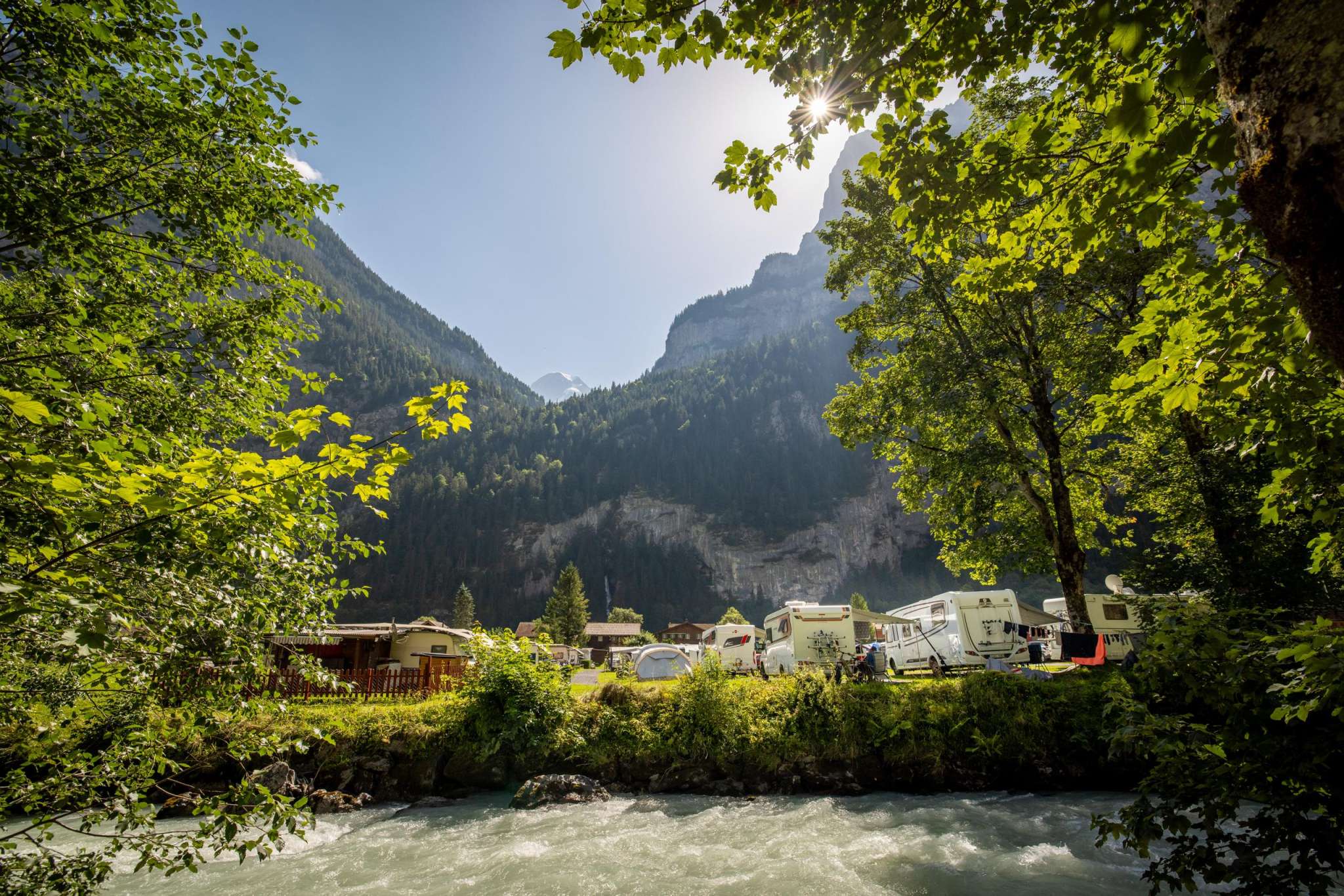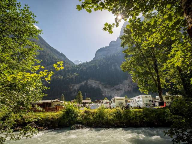 A special highlight lies just a 5-minute walk from our campsite: the Trümmelbach Falls. These unique glacial waterfalls inside the mountain, accessible via a tunnel lift, are an absolute must-see during your visit to Stechelberg.