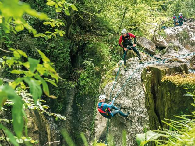 Our local canyon covers every aspect of the sport and makes a great introduction to canyoning. Travel through tall, narrow gorges and get up close and personal with nature. Short and sweet, this half day canyon will whet your appetite for more and it is only a ten minute drive from our base.