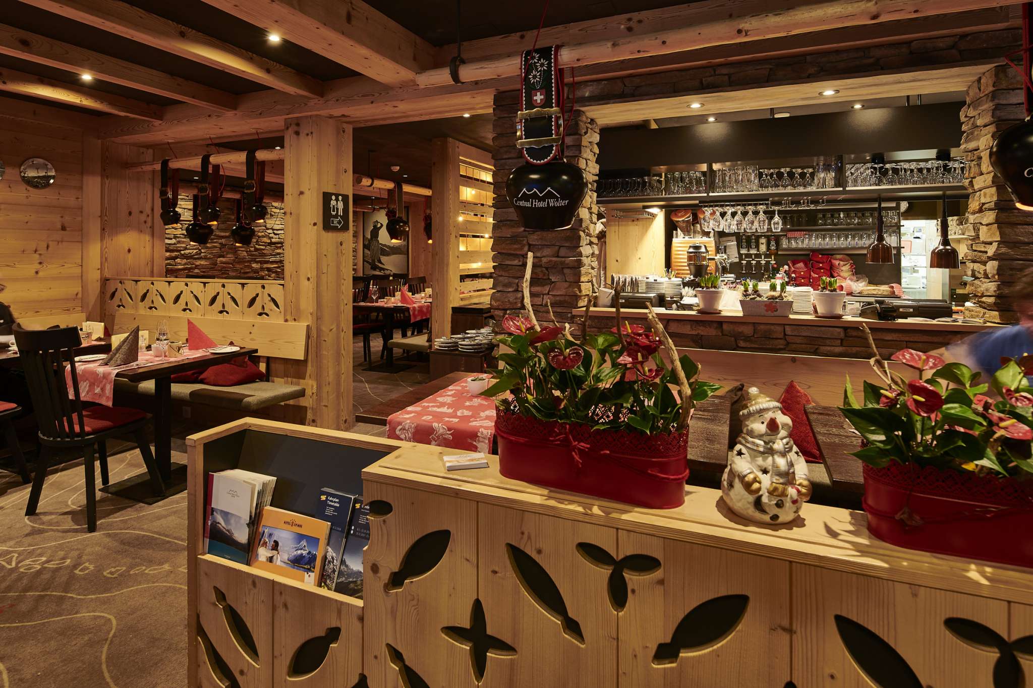 In the cosy and rustic restaurant you will be spoiled with international and traditional specialities. On the heated boulevard terrace, the sun shines for you in the morning while you enjoy your coffee with a marvellous view of the Eiger.