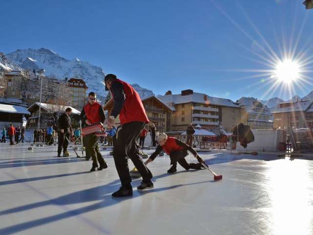 Play or learn curling in Wengen. This fascinating sport combines precision and playfulness and is easy to learn. Both covered rinks and outdoor rinks are available on the artificial ice rink. Lessons can be booked during the season.