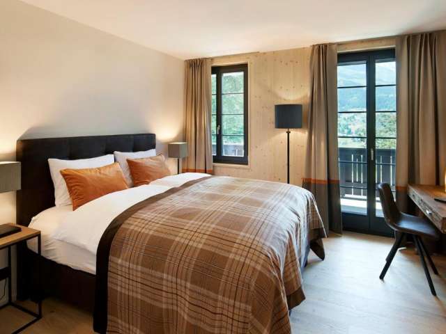 Our "Eiger View" lodge has 8 spacious hotel rooms with private bathrooms, divided in 2 Suites, 2 Deluxe Rooms, 2 Superior Rooms and 2 Standard Rooms and 3 studio flats on the top floor. All studios are equipped with a bathroom, kitchen, living area and separate bedroom. Seven rooms have direct access to surrounding terraces with views of the mountain scenery, above all on the Eiger.
