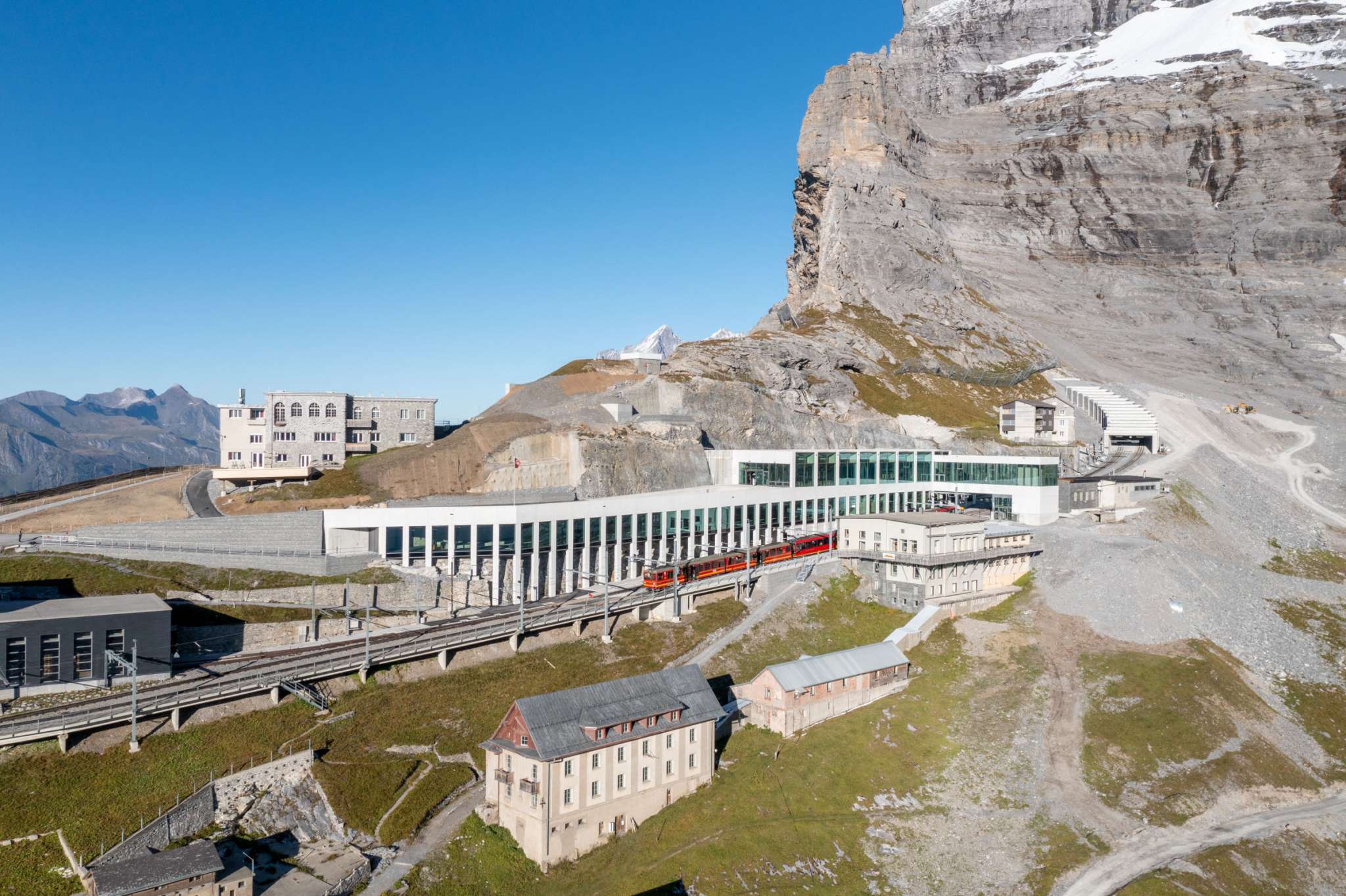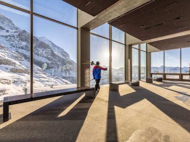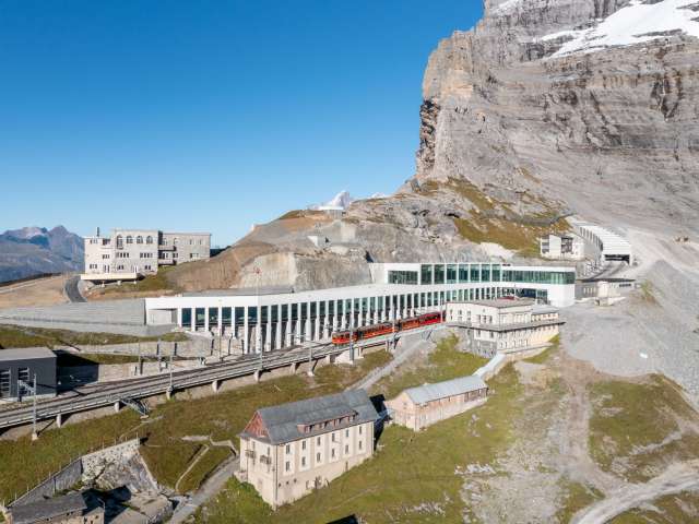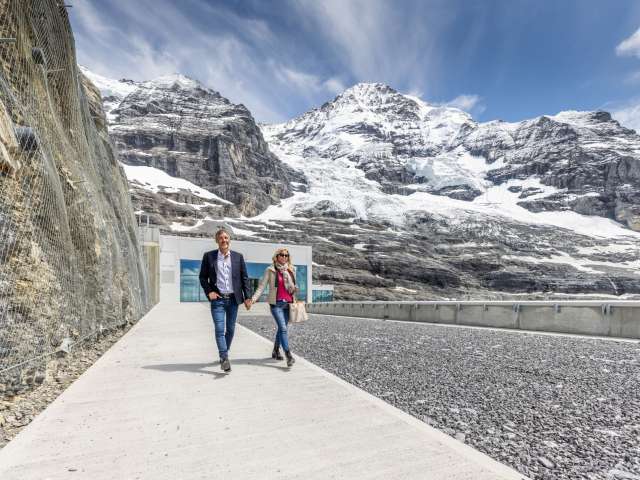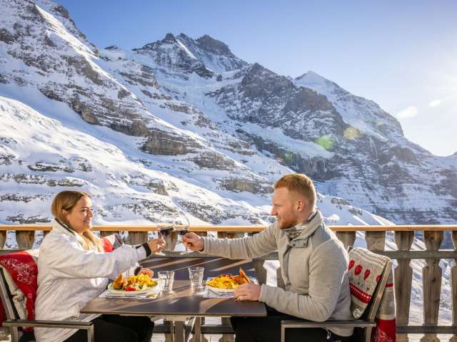 Eiger Express mountain station, starting point for the journey to the Jungfraujoch: this is the Eiger Glacier. It connects the hiking and skiing area at the foot of the Eiger North Face with the fascinating world of ice and snow of the Jungfraujoch. If you are skiing or snowboarding in winter, you can take one of the many downhill routes here. And if you feel like hiking in summer, you can choose between alpine hiking trails and gently sloping footpaths. Enjoy an aperitif and the unique view of the mountain panorama on the terrace of the Restaurant Eigergletscher.