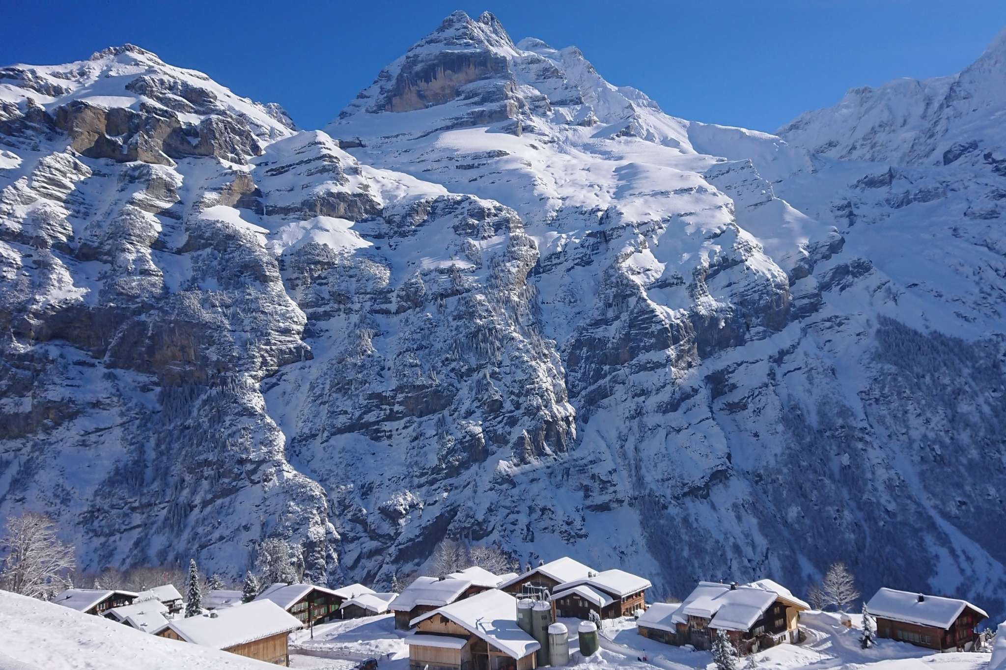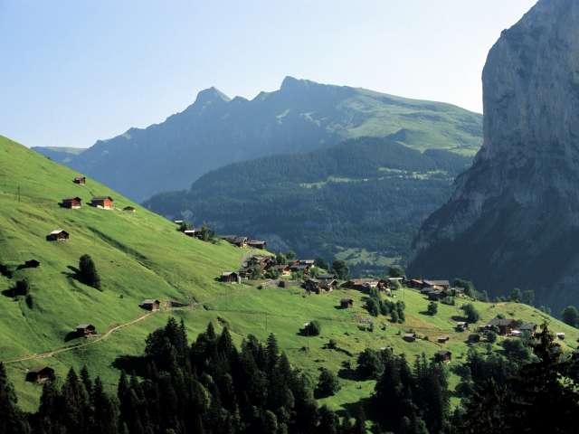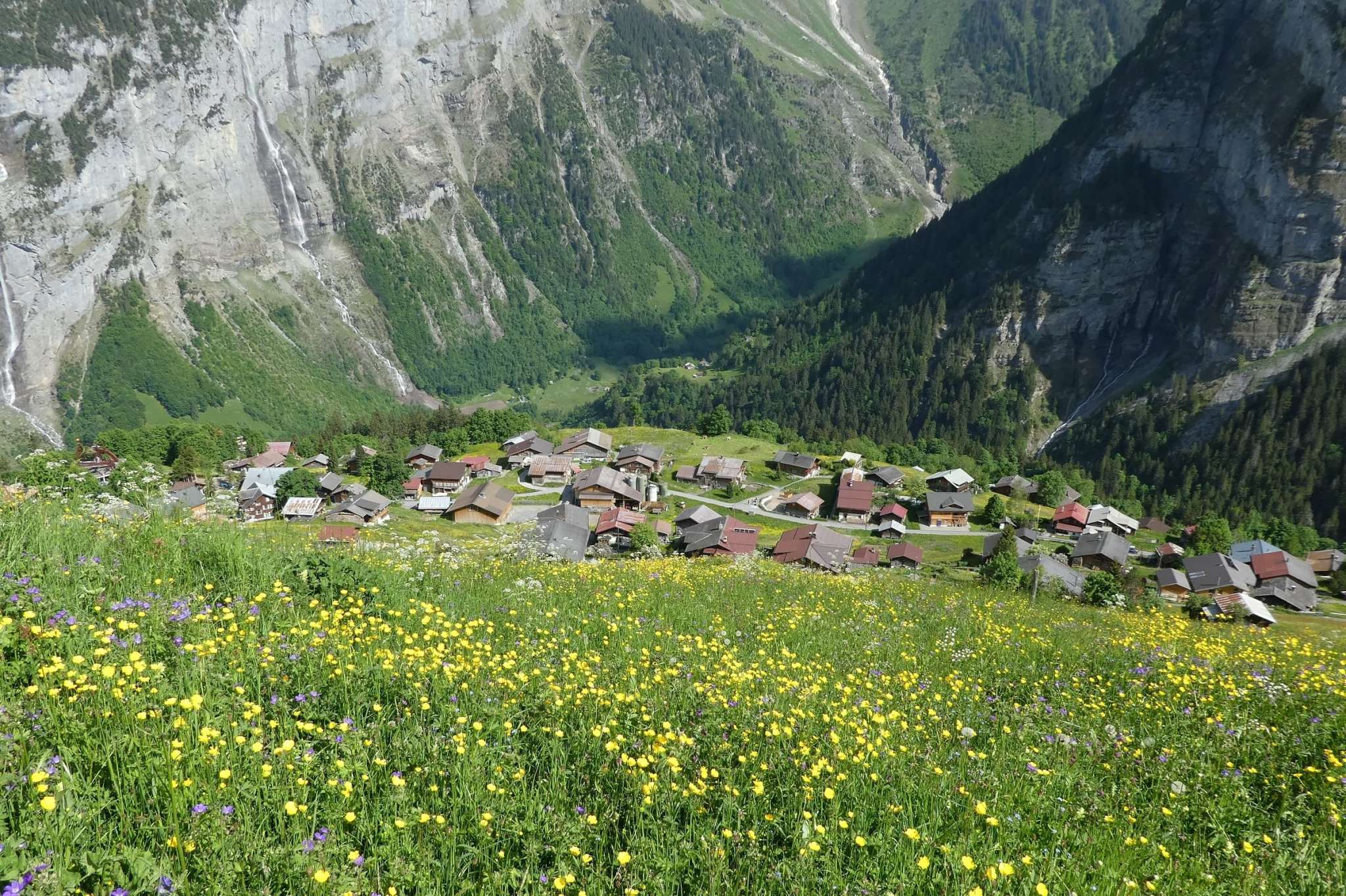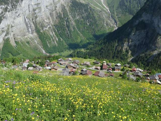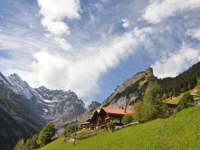 Gimmelwald is a very unspoilt mountain farming village with around 100 inhabitants. They live here in close contact with nature and the animals. The village is characterised by chalets decorated with flowers in front of the four-thousand-metre-high Jungfrau mountain massif.