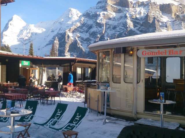 An aperitif is always part of a day's skiing. Right at the end of the ski slope - behind the Hotel Jungfrau - is the gondola bar with a cosy atmosphere and lots of charm.