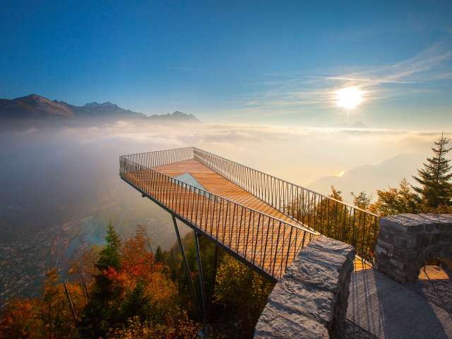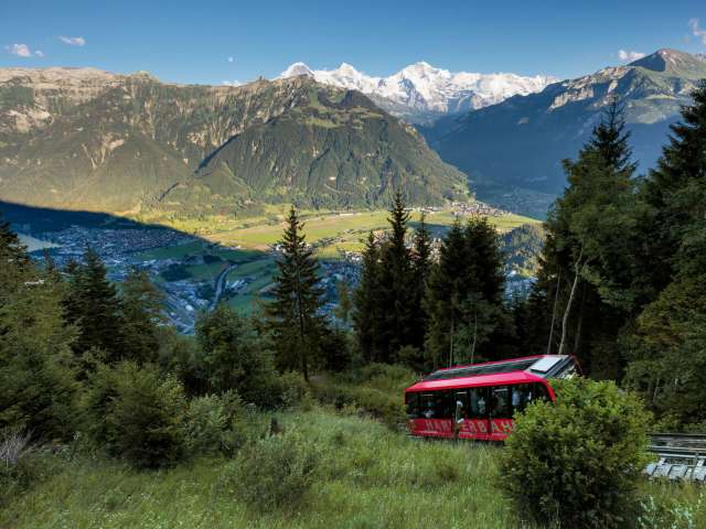 In just 10 minutes, the Harder Railway takes you from Interlaken up to the Harder Kulm. The 1,47-meter-long route climbs 754 vertical meters through the shady Harder Forest - a short but impressive ride.