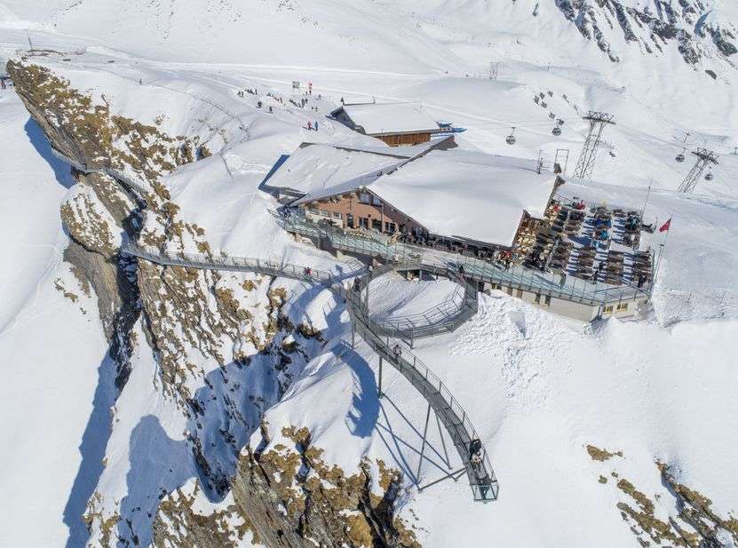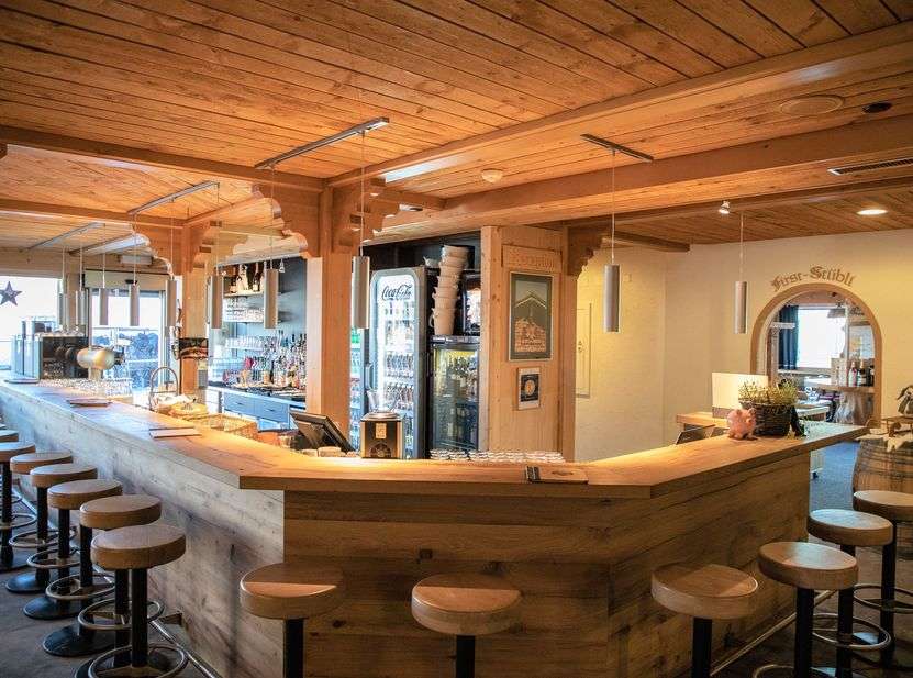 Right next to the First gondola station at 2200 metres above sea level is the First mountain restaurant, with its breathtaking view of the surrounding mountains. You can enjoy delicious dishes all day long on the sun terrace and in the restaurant.