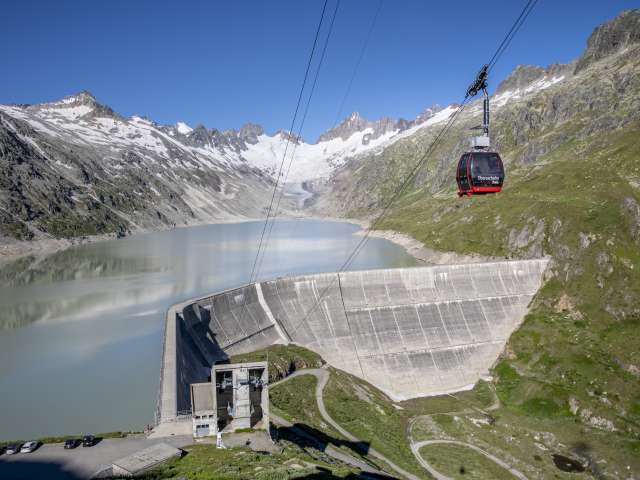 Enjoy a "low flight" on this cable car ride from the Alpenhotel Grimsel Hospiz over the Grimselsee to the Oberaarsee. During the 30-minute journey in two sections, you will experience the breathtaking granite and lake landscape from a completely new perspective.