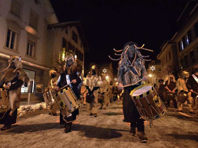 During this week, the various Trychel processions drive away the evil spirits with their impressive parades through the villages of the Haslital. Every day, the Trychel processions become more powerful and the noise louder, culminating in the night of the "Ubersitz". On this evening, all the Trychler from the surrounding villages of Willigen, Hausen, Eisenbolgen, Unterbach, Hasliberg and Meiringen parade into the village centre of Meiringen for a joint Trychel procession.