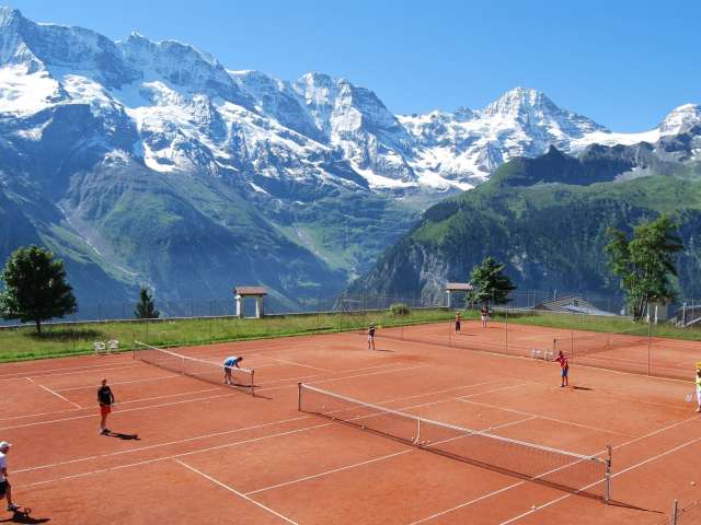 The Sportchalet Mürren offers 4 outdoor sand tennis courts with probably the most spectacular view of the Lauterbrunnen Valley. The courts can be hired individually. The nets are always taut in summer.