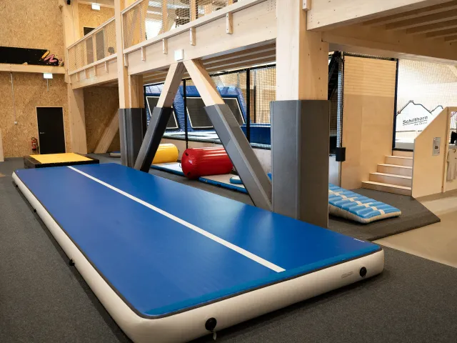 This modern 1,000 m² indoor facility offers a diverse experience centered around movement, sport, and creativity. Whether it's on the Fivesquare trampolines, jumping from the Grandmaster or tower into the airbag, on the Airtrack in the multisport area, or skating on the surface with double mini ramp, spine, and extension – both beginners and advanced athletes will find the perfect playground to express themselves.