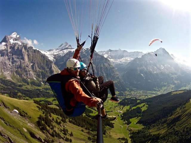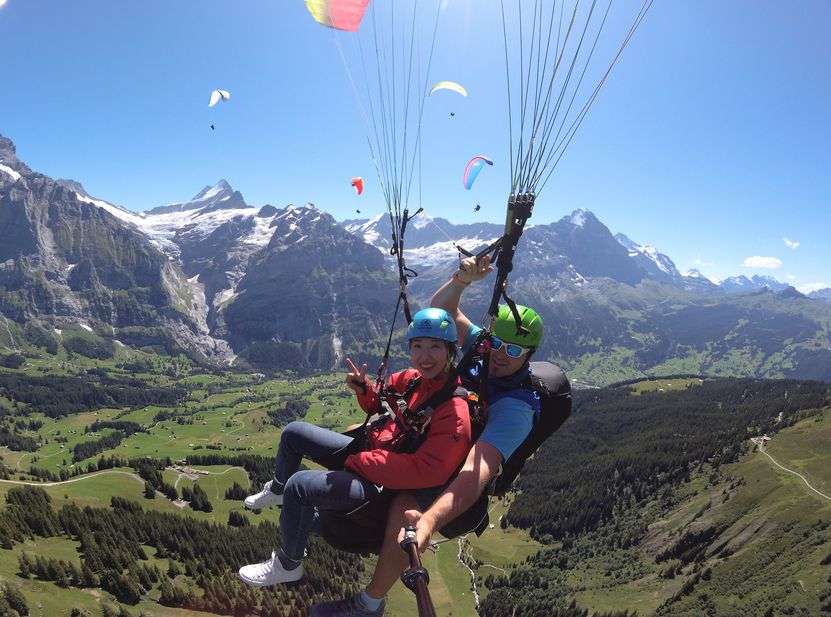 Tandem flights in front of the Eiger, Mönch and Jungfrau