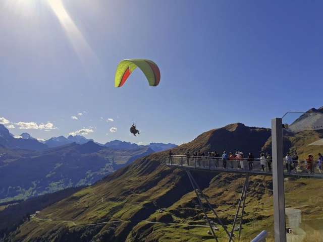 Together with your tandem pilot, you walk a few steps down the slope and you are already floating in the air, enjoying the spectacular view of the north face of the Eiger and the mountains of the Jungfrau Region.