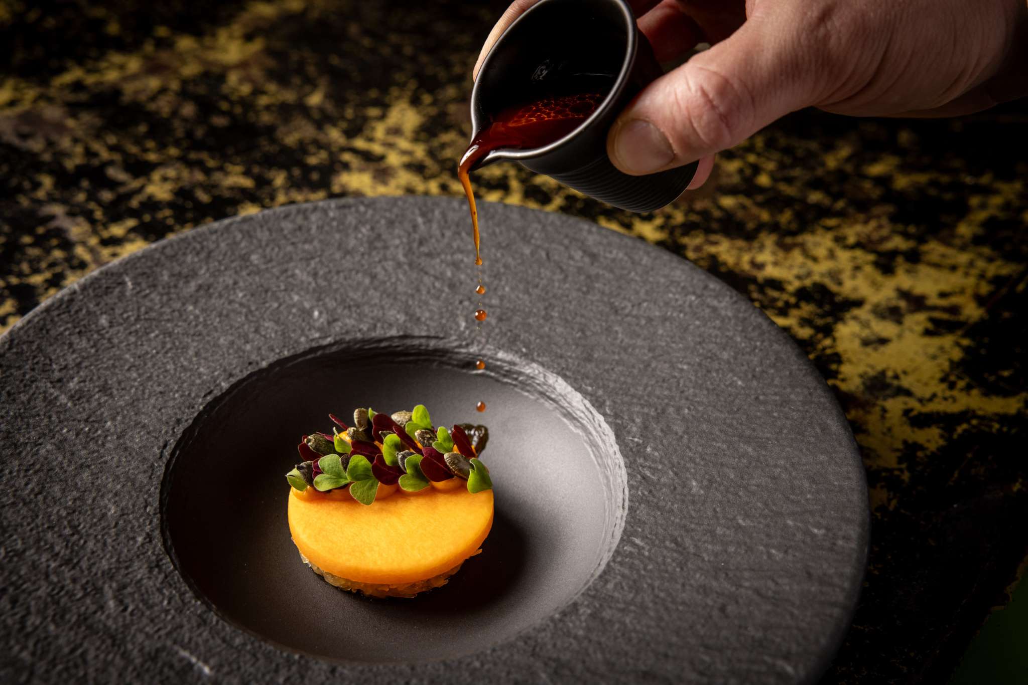 GautMillau.ch writes: "Grindelwald has rediscovered fine dining. The Hauser family at the traditional Hotel Belvedere does not want to be left behind, and the new generation certainly not: '1910 Gourmet by Hausers' is the name of the flagship restaurant. They are not intimidated – neither by the strong competition in the village nor by abrupt changes in management. Dávid Imre Rózsa is now at the helm, and he clearly loves vegetables: his passion is vegetarian cuisine. Vegetable courses are also listed on the classic menu, and the intermediate courses (dandelion ice cream, advertised as a 'delicacy from the kitchen') or desserts (creamy gooseberry sorbet on biscuit crumbles) also have a vegetarian touch.