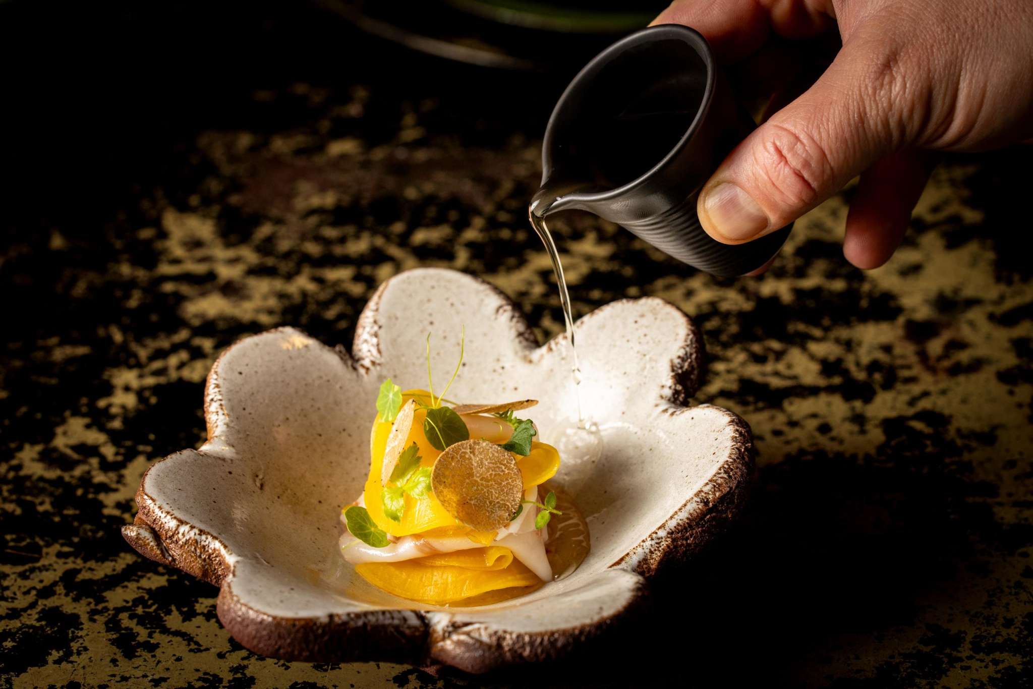 The modern culinary style of our head chef Dávid Imre Rózsa is characterised by technical sophistication and reduced yet flavourful compositions. Dávid was awarded one star by the Guide MICHELIN 2025 selection and 16 points by Gault&Millau.