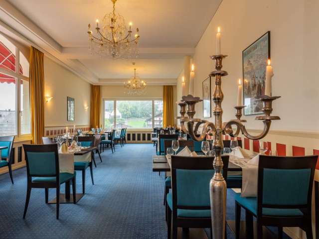 A balanced breakfast buffet awaits you in the morning in the dining room - with a view over the Lauterbrunnen Valley. In the evening, you will be served a 4-course menu of your choice (selectable on site). Dinner opens daily with a starter buffet with salad and soup. Once a week, you can also enjoy a delicious dessert buffet with homemade patisserie.