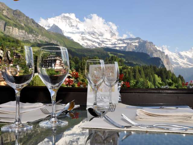 The cosy Maya Caprice restaurant serves freshly prepared dishes with an Italian touch. Enjoy a fine lunch on the sun terrace with a wonderful view of the Jungfrau and the Lauterbrunnen Valley. The extensive drinks menu includes local and international specialities.