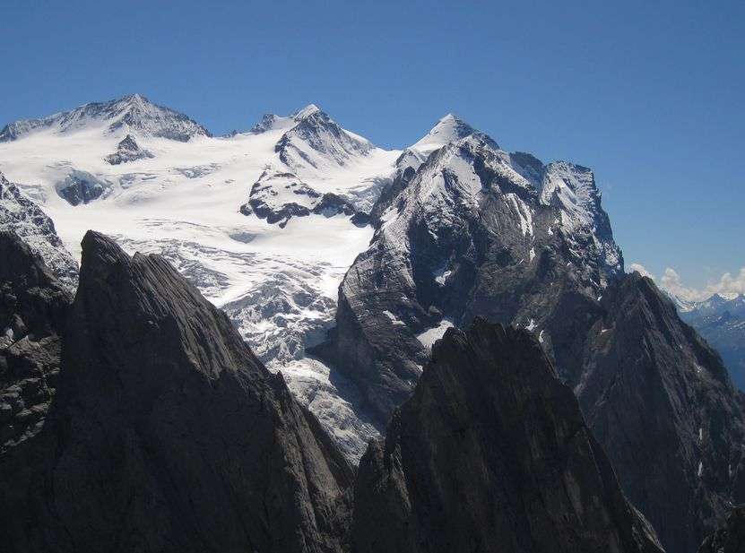 The Rosenhorn is a popular destination for mountaineers in summer and winter. The summit can be reached from the Dossenhütte or the Gaulihütte. The Rosenhorn is the lowest peak in the Wetterhorn massif (Mittelhorn and Wetterhorn).