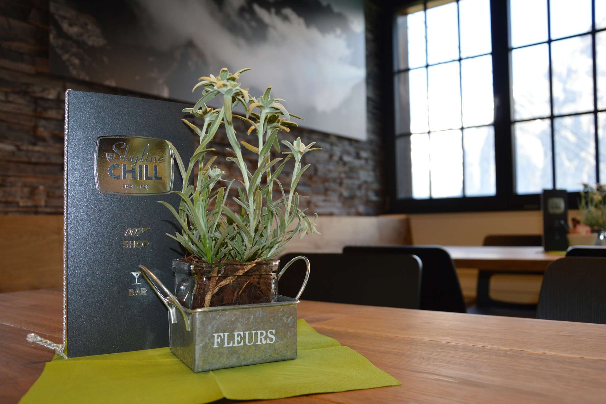 In the Skyline Bar, the team offers you a variety of hot and cold drinks - including a view of the Lauterbrunnen Valley. Hot sandwiches, fruit tarts and small snacks are also available. Perfect for a snack or to take away on the go.