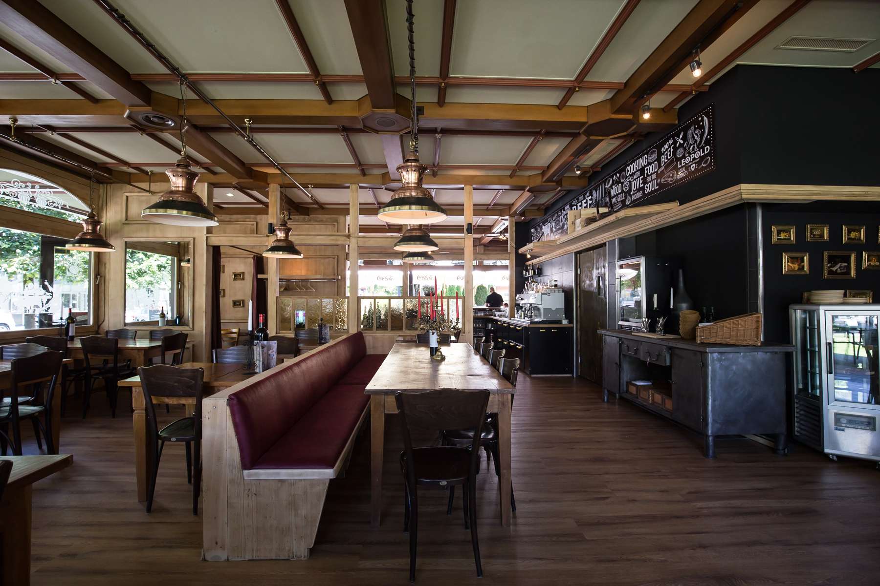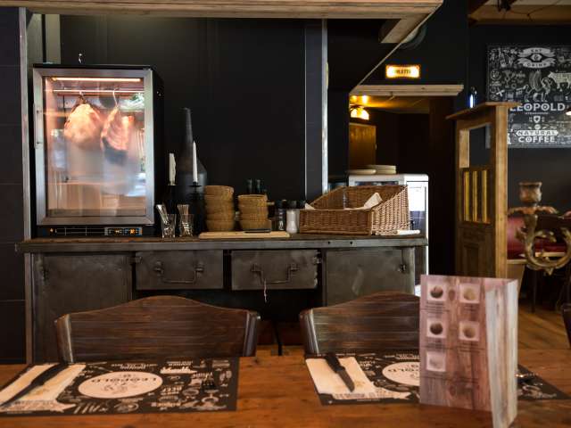 The menu includes dry-aged Swiss beef. In addition to steaks, the Steakhouse Leopold also offers spare ribs, grilled sausages, insane burgers and delicious fish specialities.