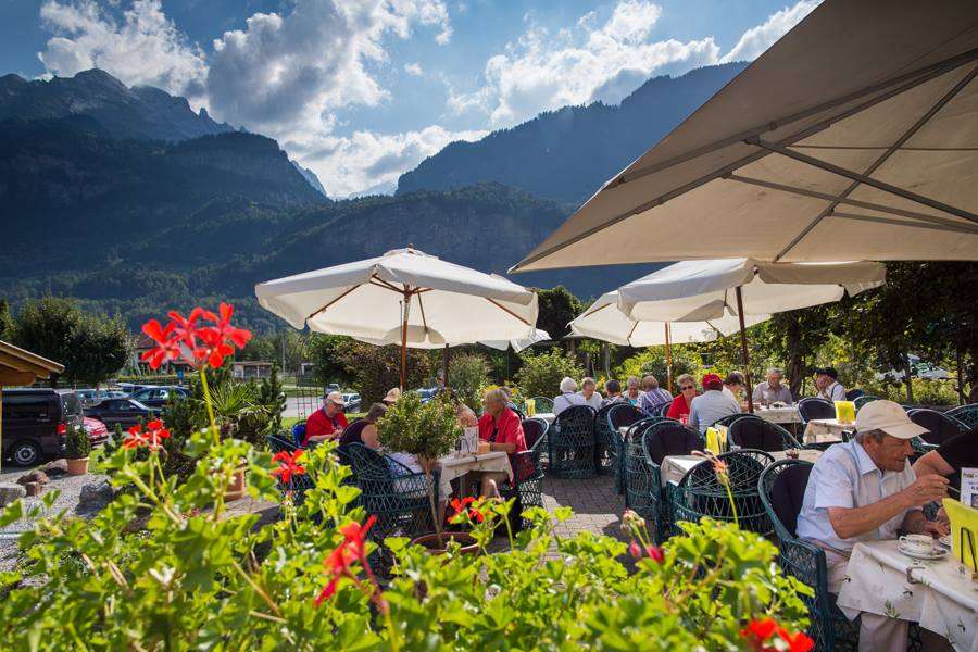 Can't decide which patisserie or cake to have with your coffee or tea? No wonder, because at the Frutiger Tea Room in Meiringen you are spoilt for choice. The Haslital dessert specialities Tatzelwurm, meringues, Hasli cake and homemade ice cream are particularly popular.