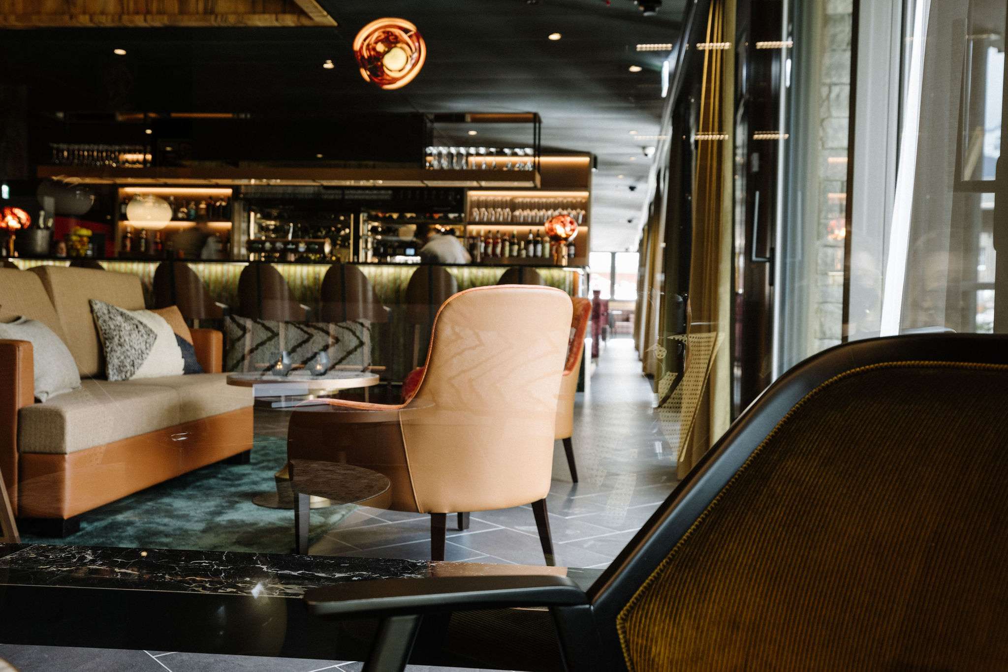 Like the Eiger, Mönch and Jungfrau, the lobby, bar and restaurant form a magical unit.