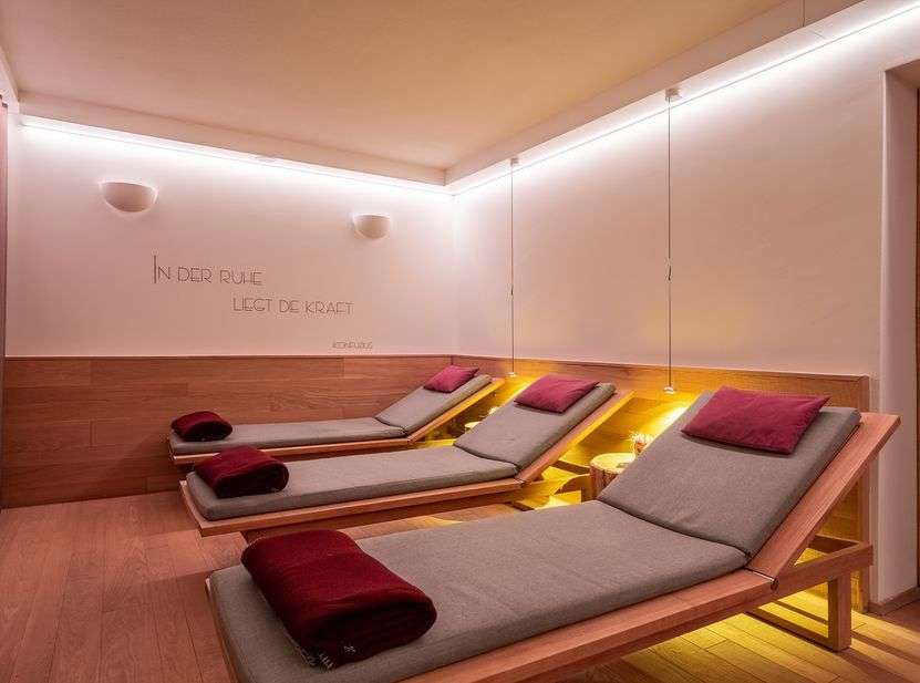 The Hotel Gletschergarten offers you a small but fine wellness oasis with sauna/sanarium, steam bath and a cosy relaxation room. Relax after a long day of skiing or hiking. When furnishing our wellness area, we attached great importance to natural materials, using a lot of oak and Swiss stone pine from the region.